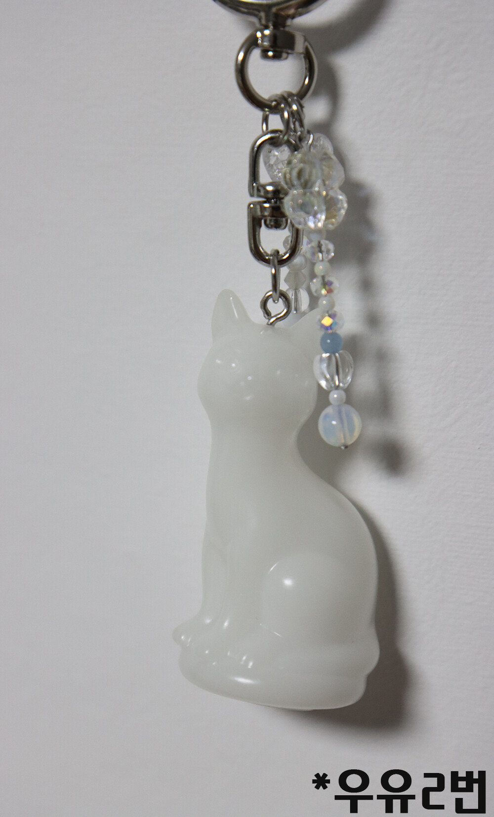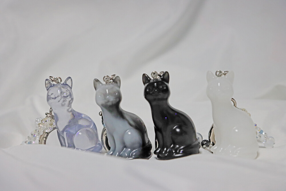 레진으로 제작한 고양이 펜던트로 제작한 키링입니다.