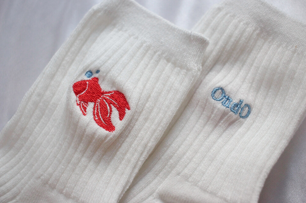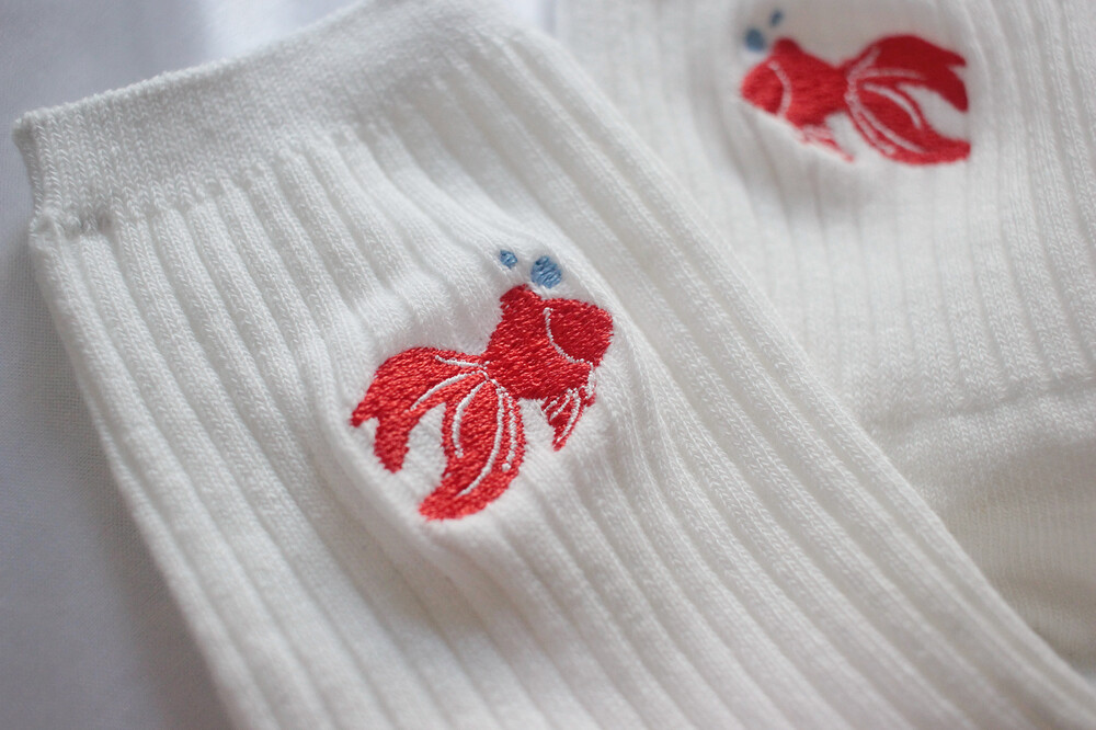 금붕어를 자수로 담은 양말입니다.